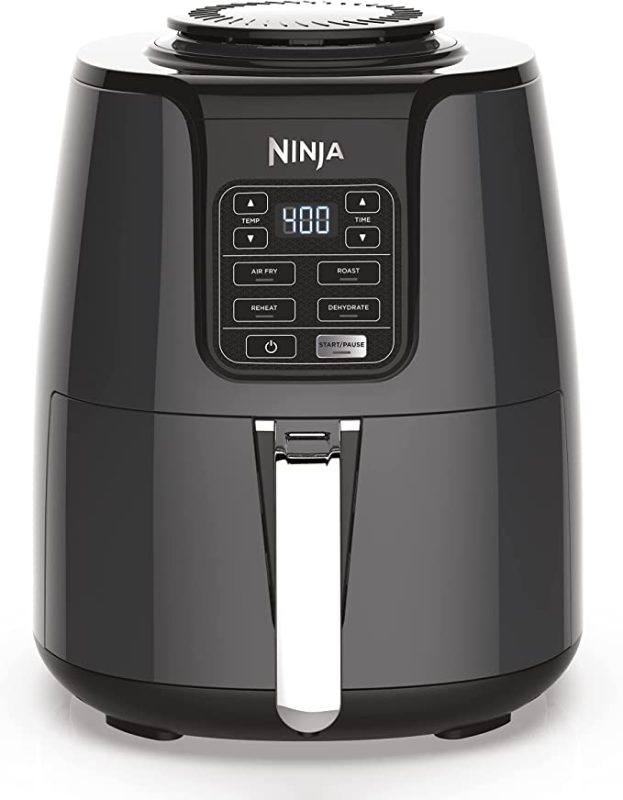 Ninja AF101 Air Fryer that Crisps, Roasts, Reheats, & Dehydrates, for Quick, Easy Meals, 4 Quart Capacity, & High Gloss Finish, Black/Grey