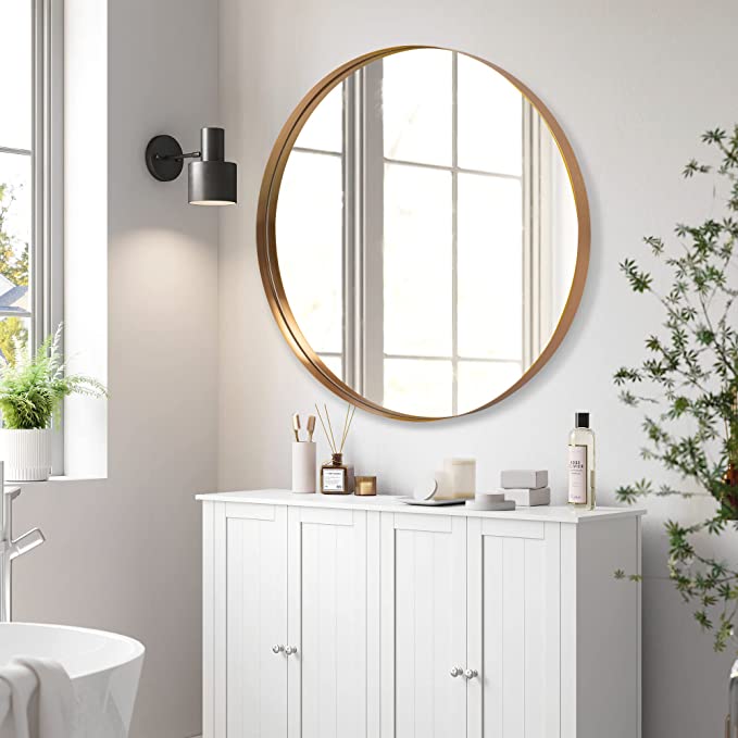 - PRODUCT SIZE: This 36inch round mirror for bathroom is perfect as a decorative or vanity mirror for anywhere, such as bedroom, bathroom and living room. This is not only a round wall mirror, but also a piece of art in your house which can bring you nice mood everyday. Before you go out, you can use this mirror to see if you are looking your best. Be confident and go out to wow everyone.