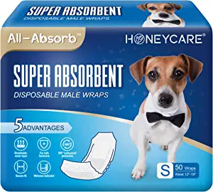 - DRY AS A BONE - All-Absorb Male Wraps have 360 degree leak-proof protection barriers, and a super absorbent core which prevents any unwanted spills or accidents where you don't want him to mark. Designed to fit small sized male dogs with a 12-18 inch waist