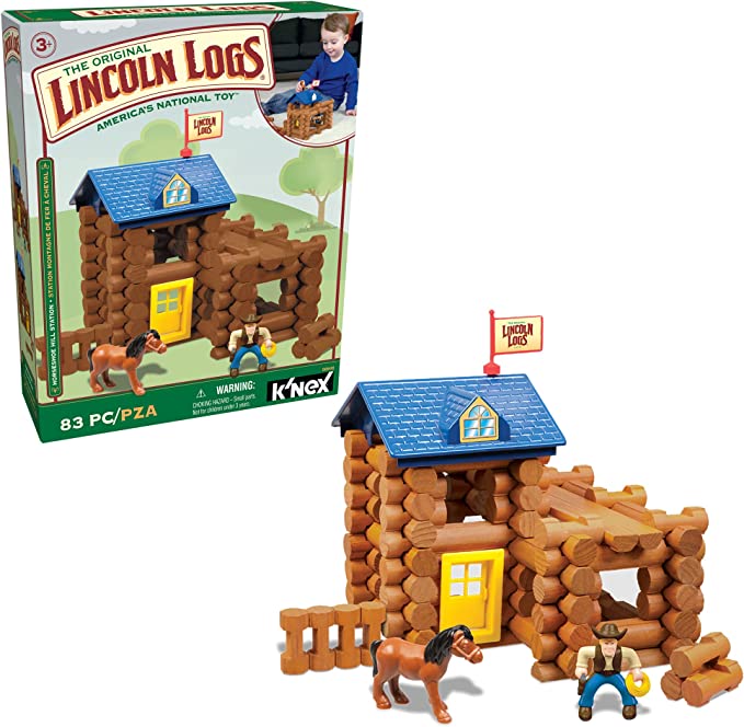 - CLASSIC TOY WITH MODERN TWIST – Build memories with your children with the LINCOLN LOGS Horseshoe Hill Station. Parents and grandparents will also enjoy reminiscing about fond childhood memories as they stack these wooden pieces with their kids and grandkids, constructing a variety of cottages and horse stables.